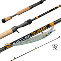 The custom ergonomic handles on the Kistler Jerk Bait Rod provide a comfortable and secure grip, reducing hand fatigue during long fishing sessions. This design allows for better control and precision, essential for effectively working jerk baits.